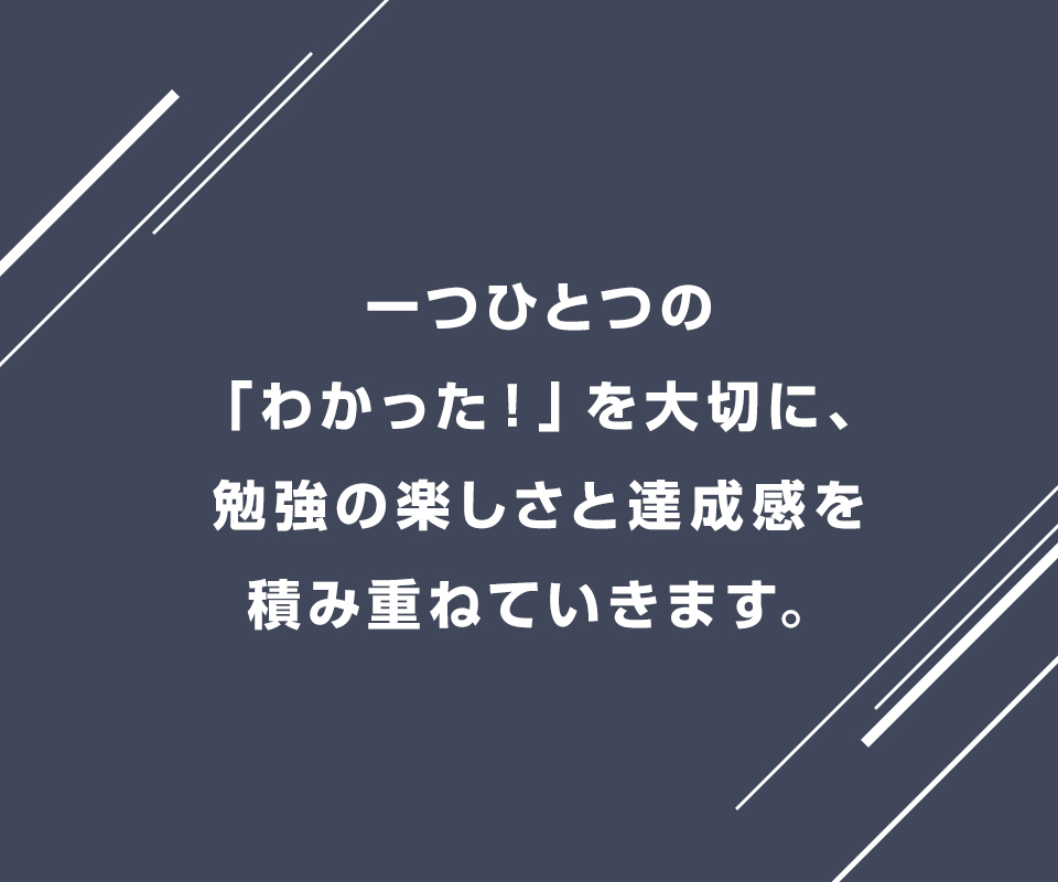 一人ひとりのつまずきを丁寧に見つけ、わかるまでしっかりサポートします。勉強が苦手なお子さまも、安心してお任せください。
