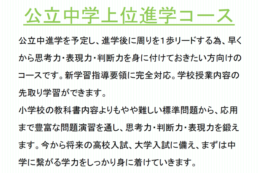 中学校で上位スタートを切るための、本格的な学びへの第一歩となるコースです。